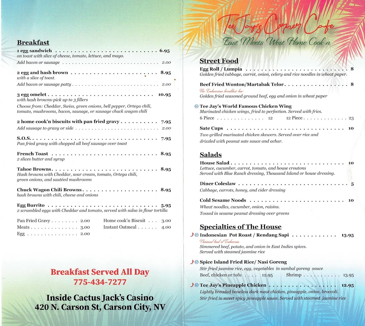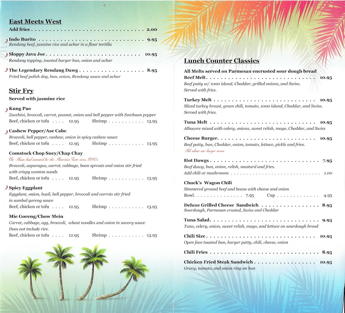 The menu accommodates various dining needs, suitable for quick orders or casual sit-down meals. Most dishes incorporate flavorful Indonesian and Asian influences alongside American classics, providing a broad culinary range for different tastes and meal occasions.